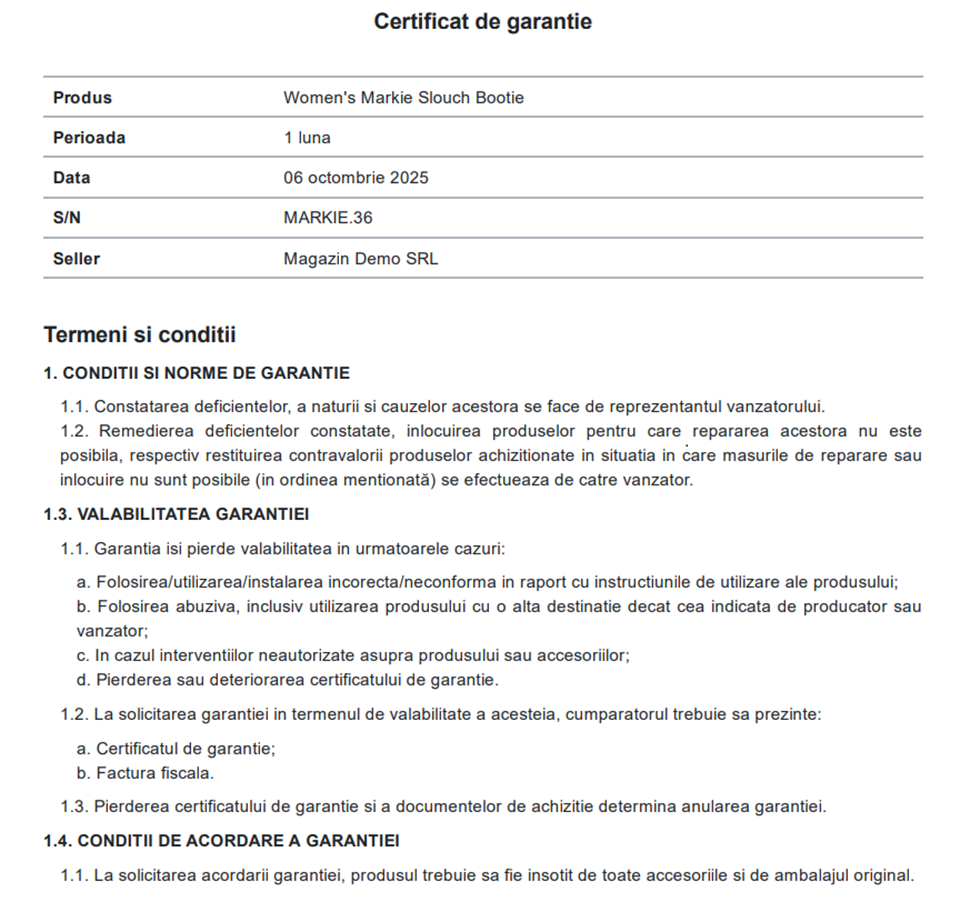 Garantiile pentru produse iti permit sa informezi clientii despre conditiile de garantie aplicabile si sa iti aliniezi magazinul cu reglementarile legale in vigoare.