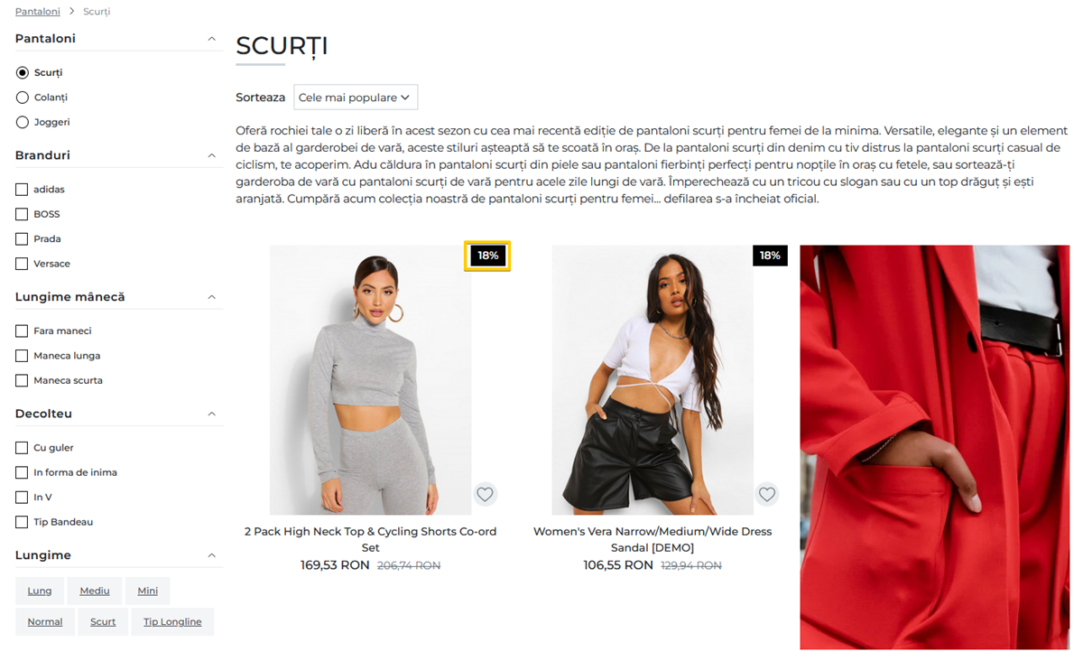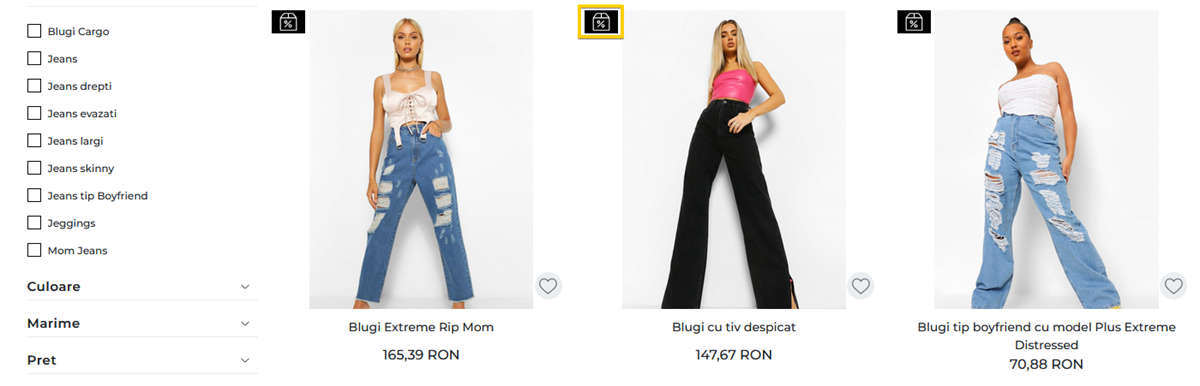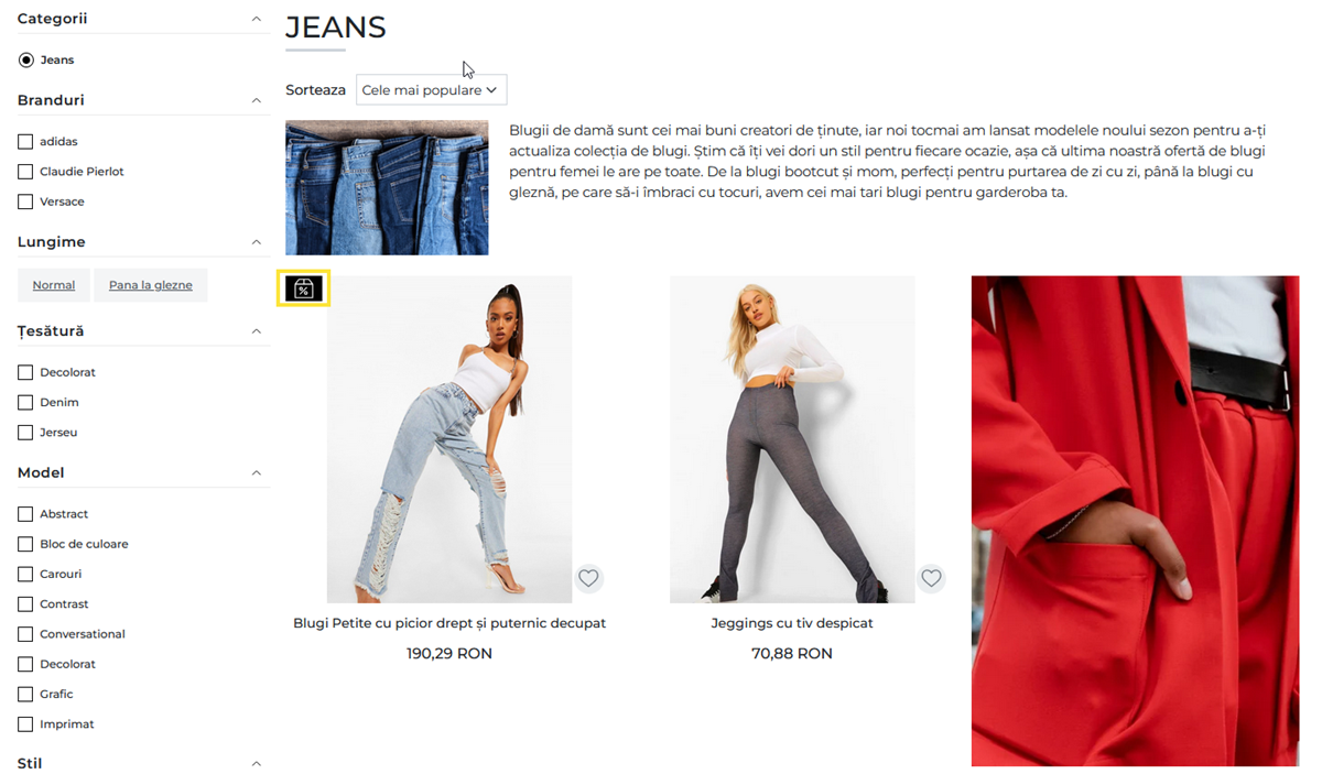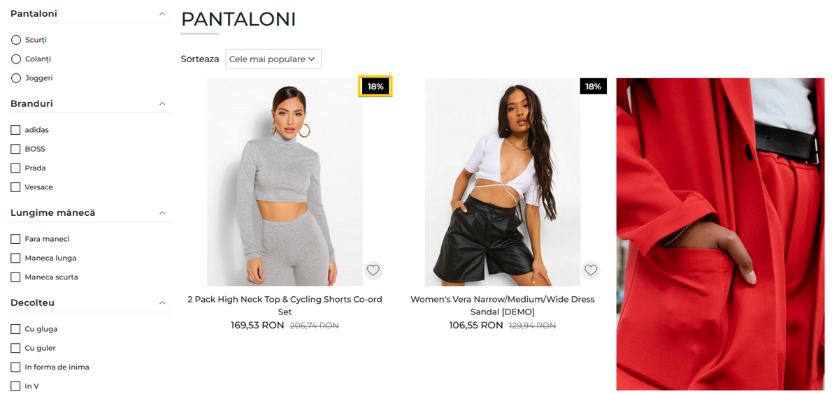 In pagina de categorie, discount-ul va fi afisat sub forma de procentaj.