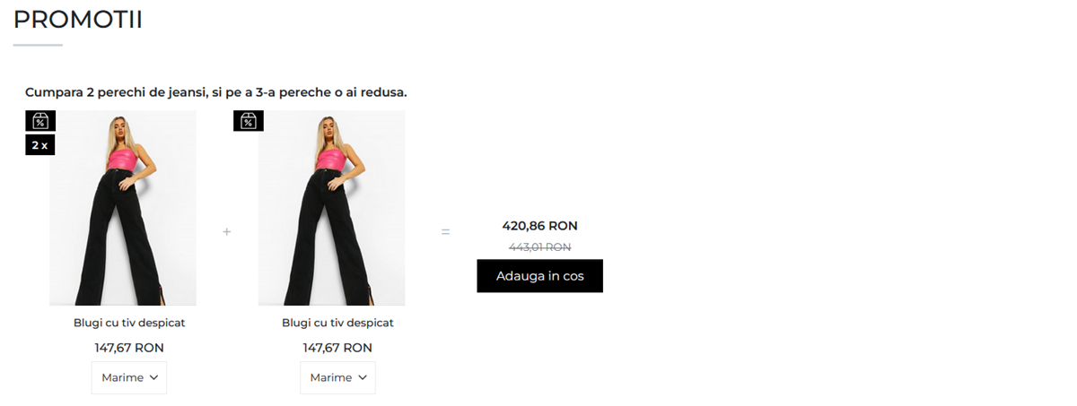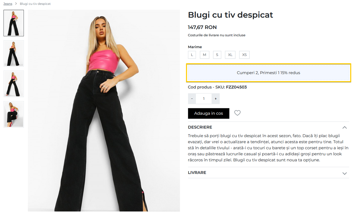 Semnalizarea promotiei in pagina de produs - Vezi magazin demo.