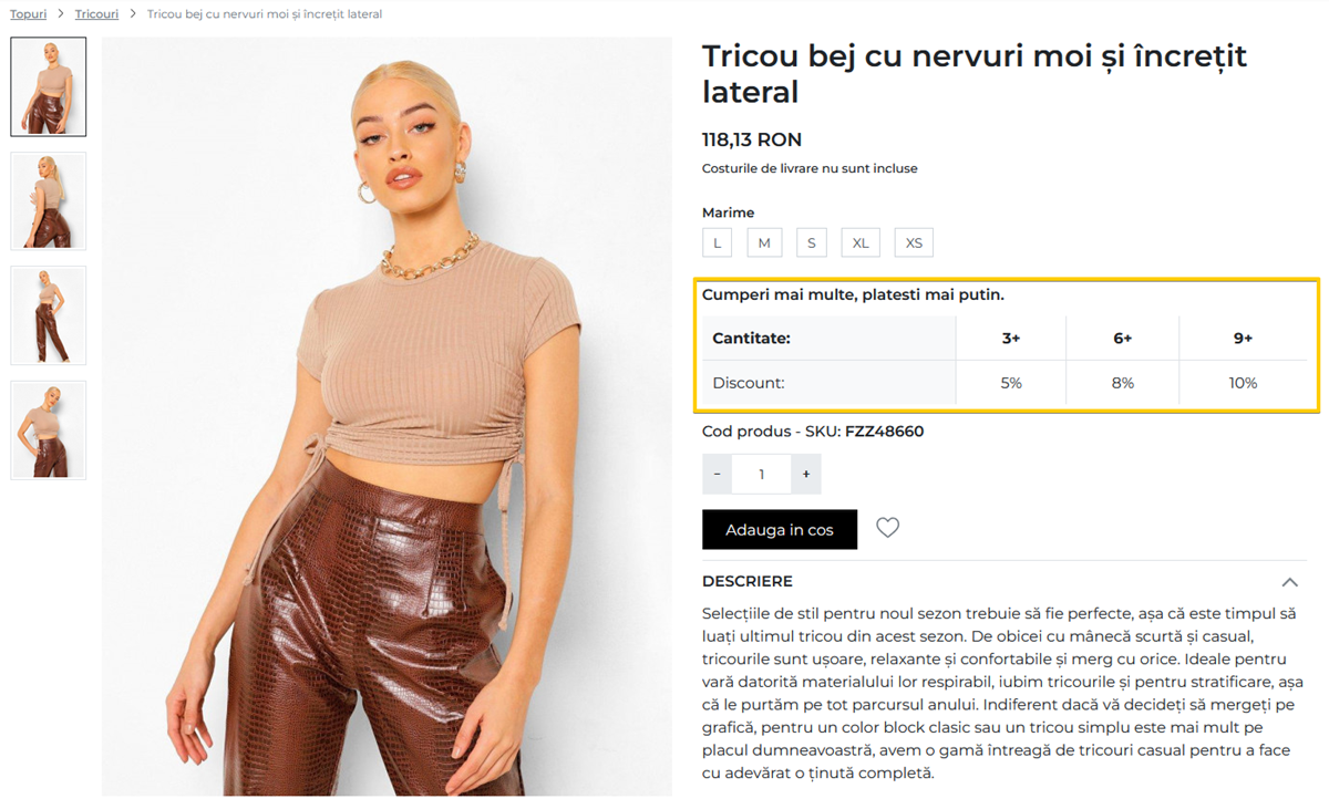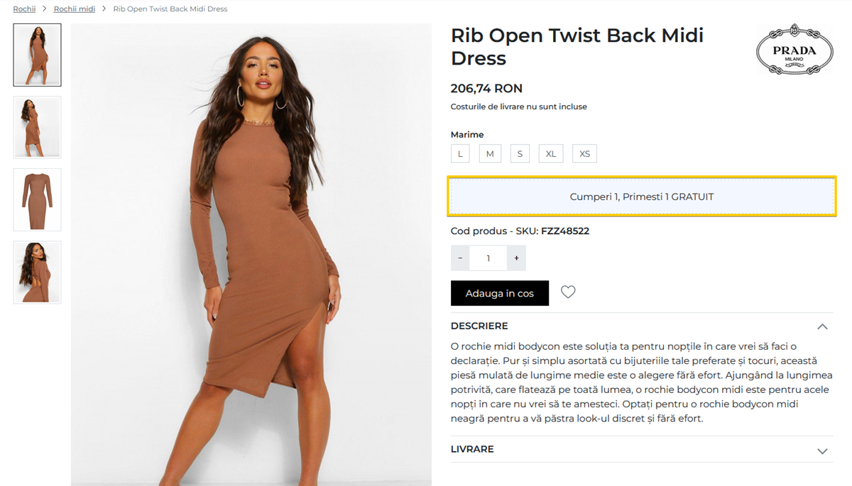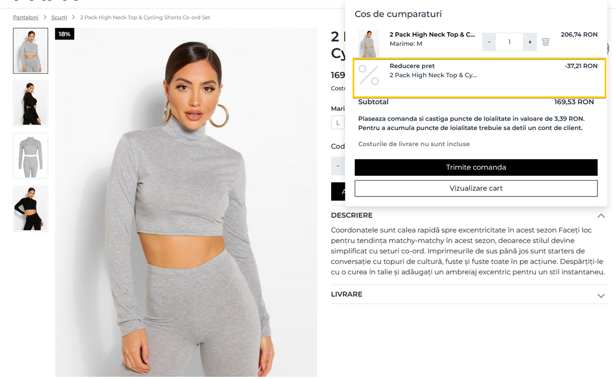 Semnalizarea promotiei in pagina de produs