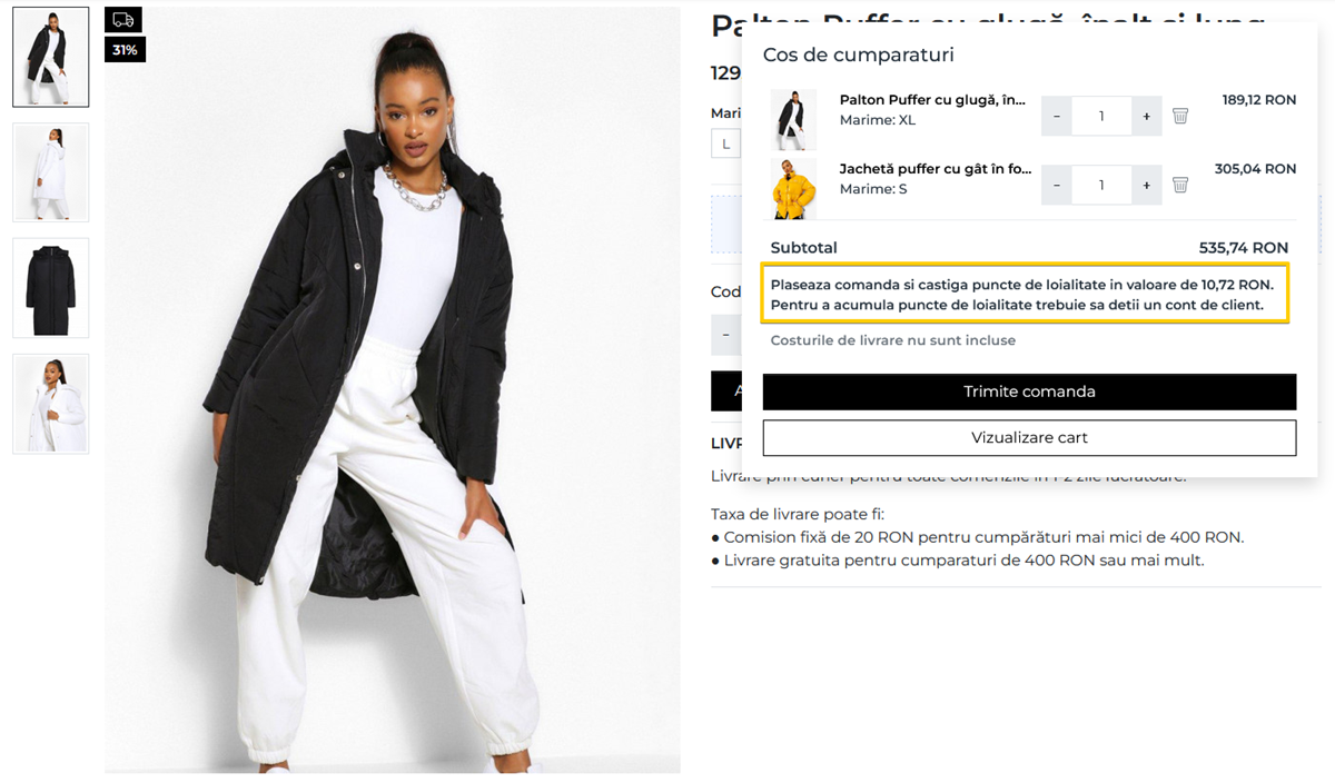 Suplimentar, poti evidentia promotiile prin setarea unor mesaje de upsell in magazin.