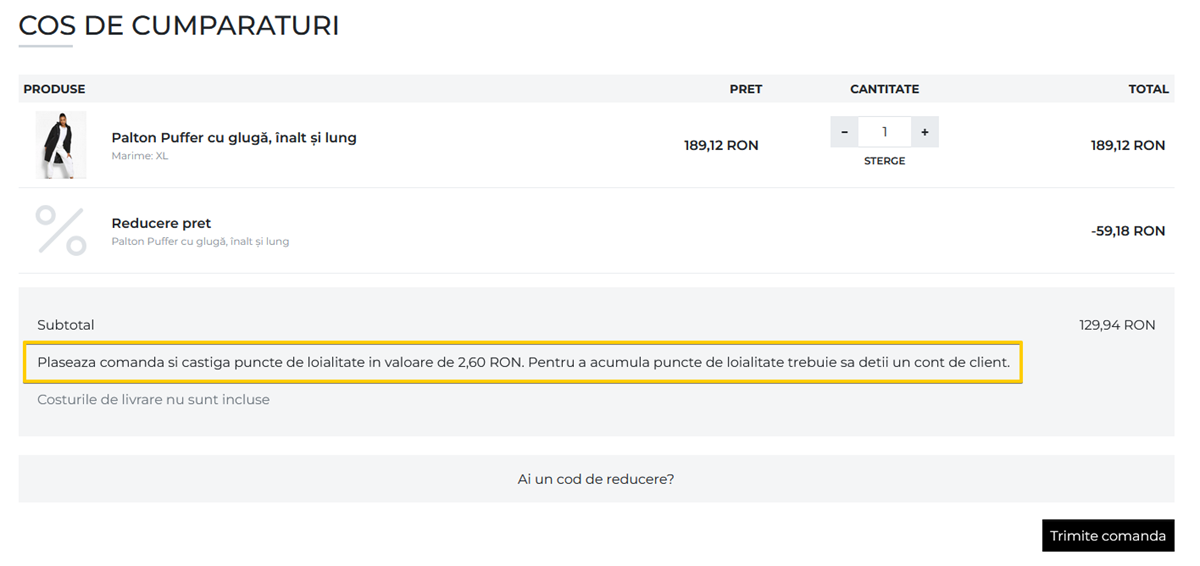 Semnalizarea promotiei in cosul de cumparaturi