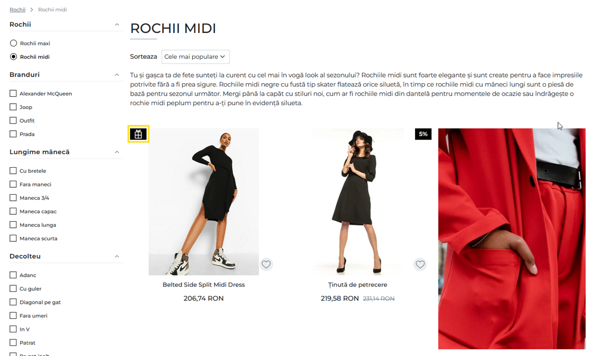 Semnalizarea promotiei in listing-ul de produse