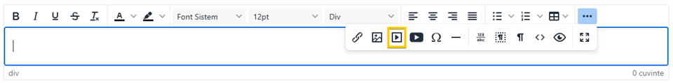 Introdu URL-ul in campul dedicat, sau selecteaza un fisier video incarcat anterior in Manager fisiere, dupa care seteaza inaltimea si latimea pe care le va avea videoclipul in cadrul descrierii;