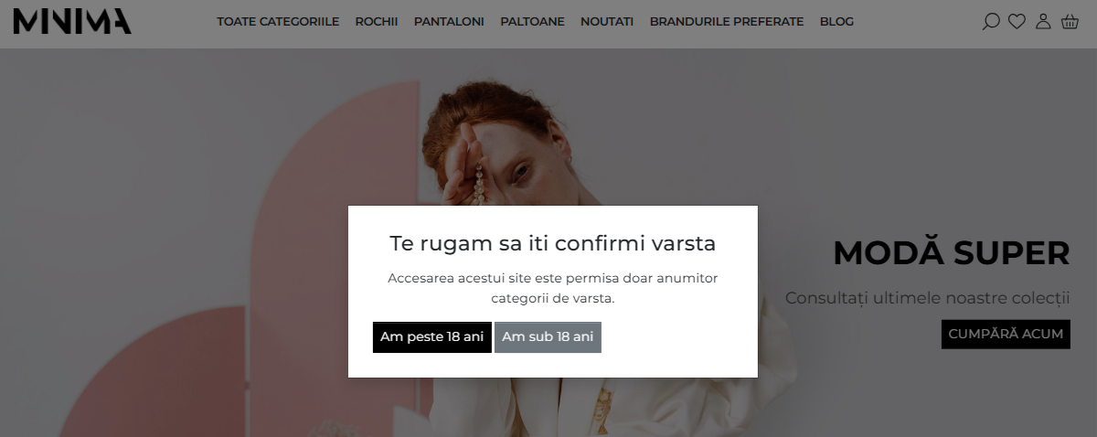 Se afiseaza sub forma de fereastra pop-up, care poate aparea imediat dupa accesarea site-ului sau la interval de cateva secunde dupa acest moment.