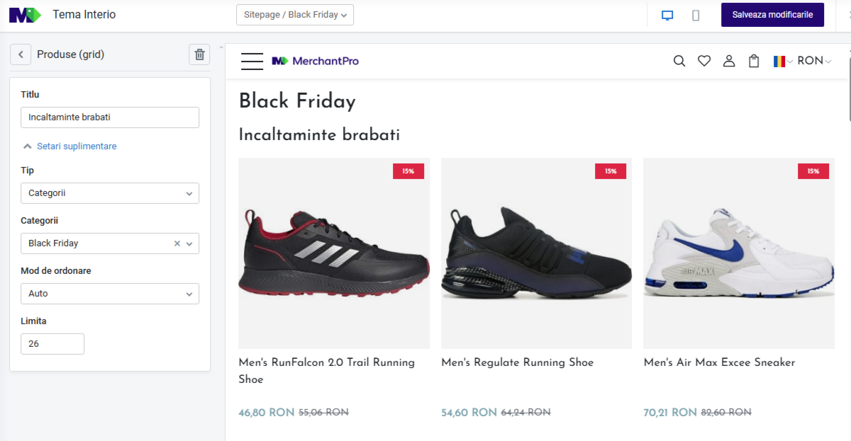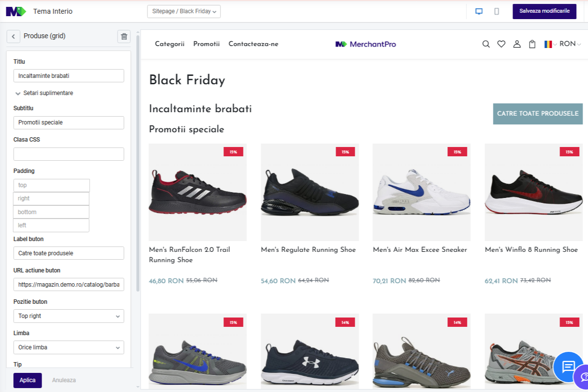 Platforma MerchantPro iti pune la dispozitie toate instrumentele necesare pentru a construi rapid o astfel de pagina, adaptata nevoilor tale si usor de actualizat.