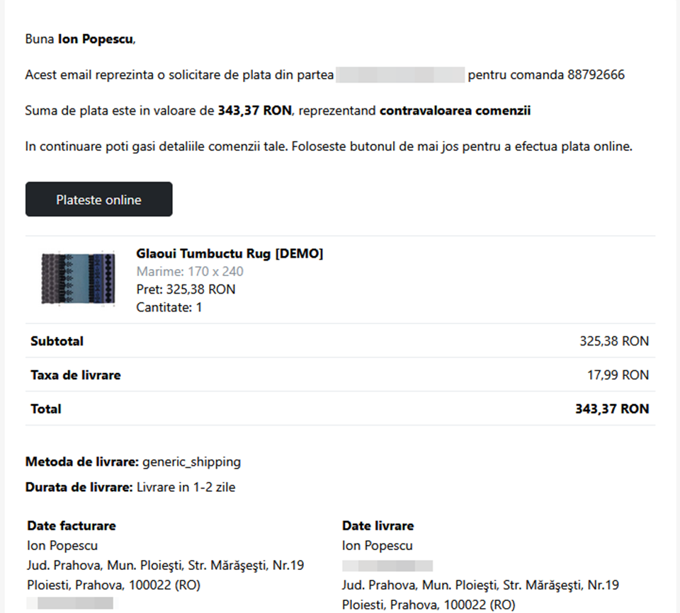 Exemplu de email cu solicitare de reluare a platii: